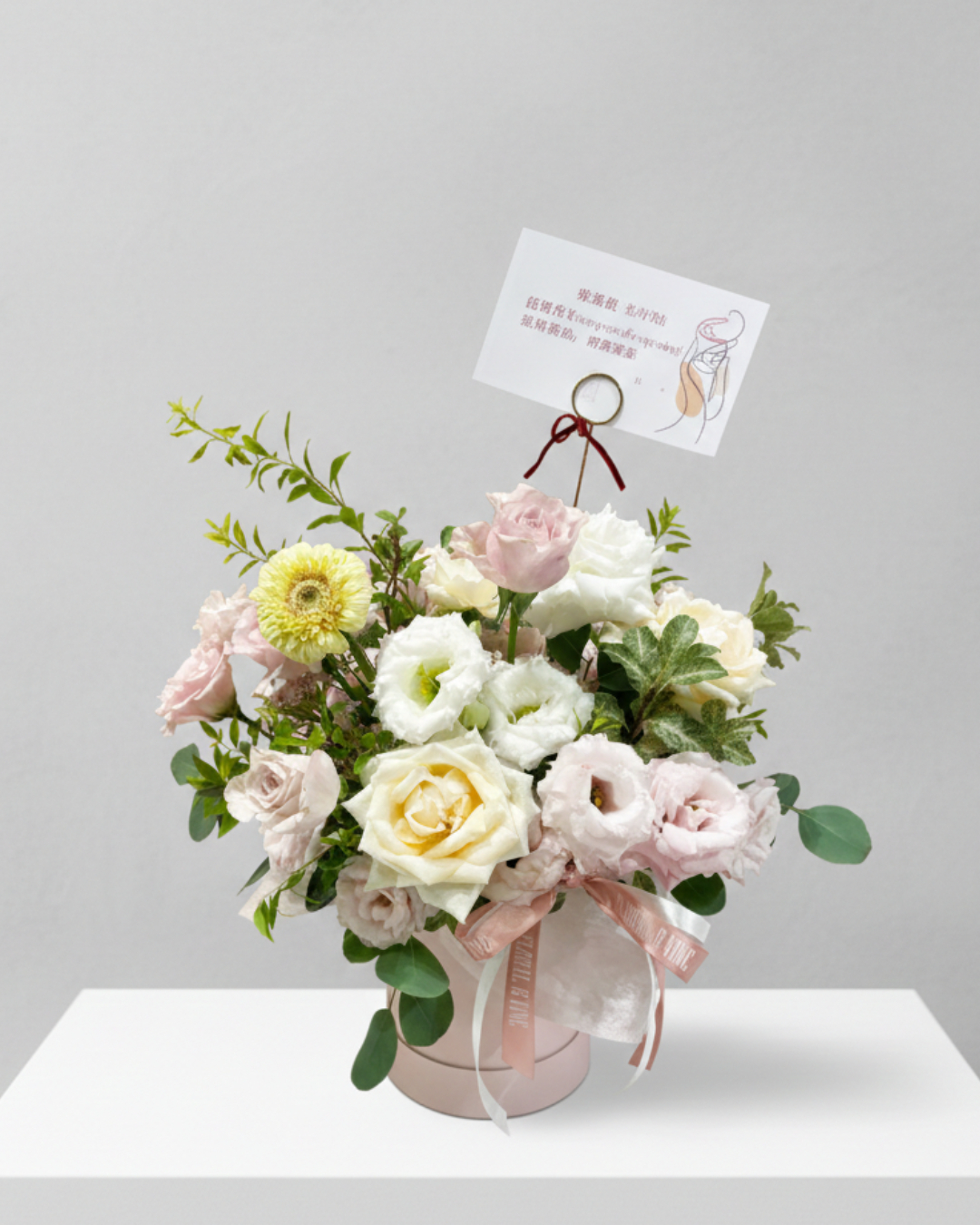 精緻的法式小花園祝賀花禮,優雅又細緻的粉嫩色系,帶來最美好的祝福!