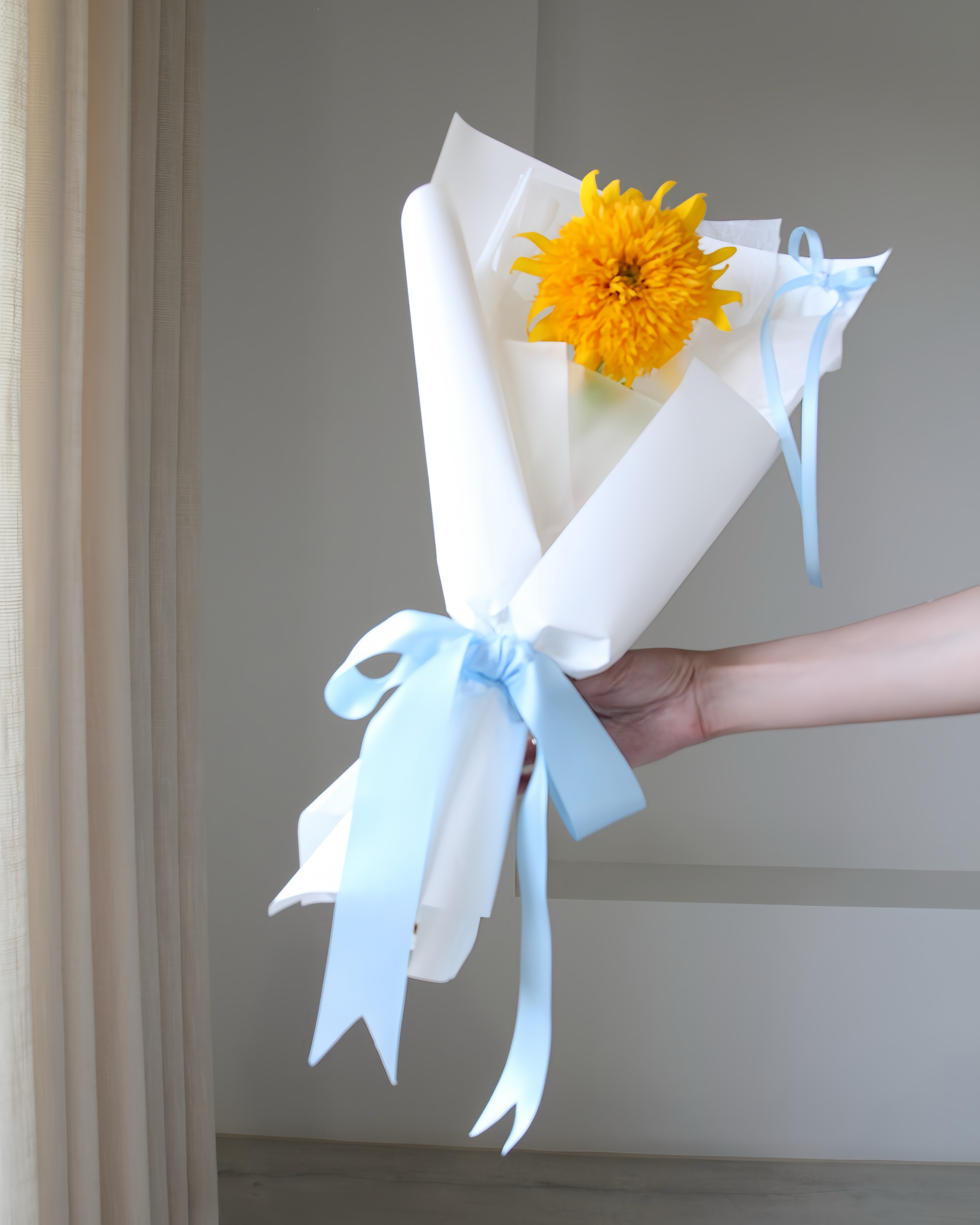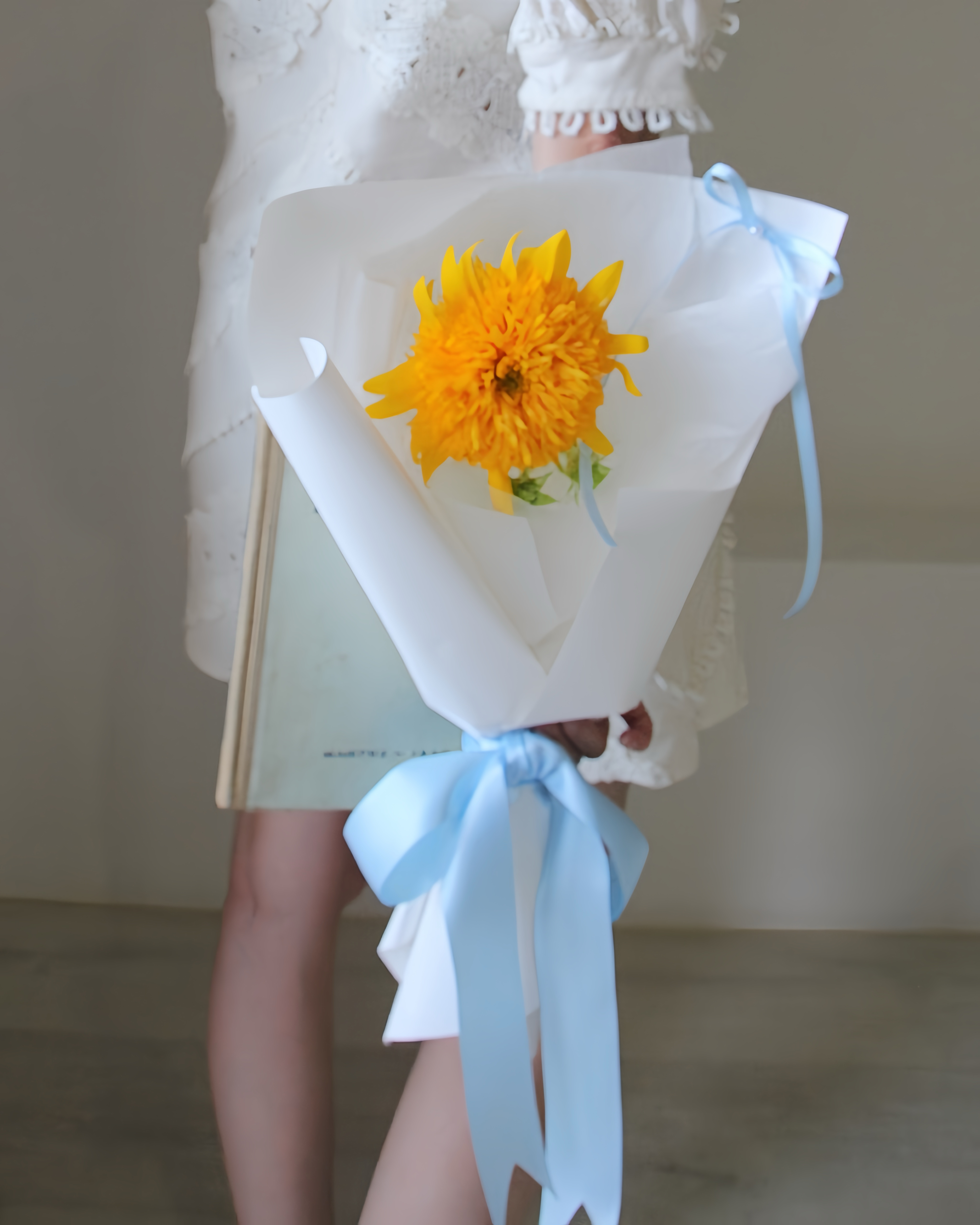 Yellow Teddy 單朵泰迪熊向日葵鮮花畢業花束